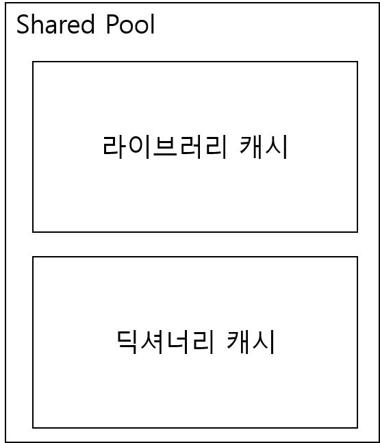 Shared Pool의 내부 구조는 크게 라이브러리 캐시(Library Cache)와 딕셔너리 캐시(Dictionary Cache)가 있다.