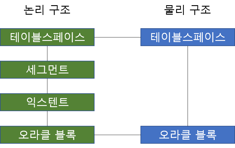오라클 데이터 구조는 오라클이 자체적으로 정한 논리 구조와 운영체제가 관리하는 물리 구조가 있다.